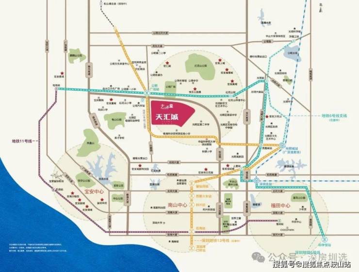 地铁13号线(在建中)科创黄金中轴,串联留仙洞总部基地、西丽湖国际科教城、南山科技园、深圳湾超级总部基地和后海总部基地