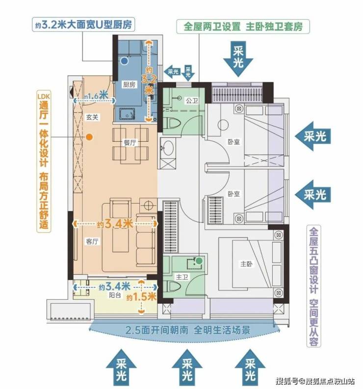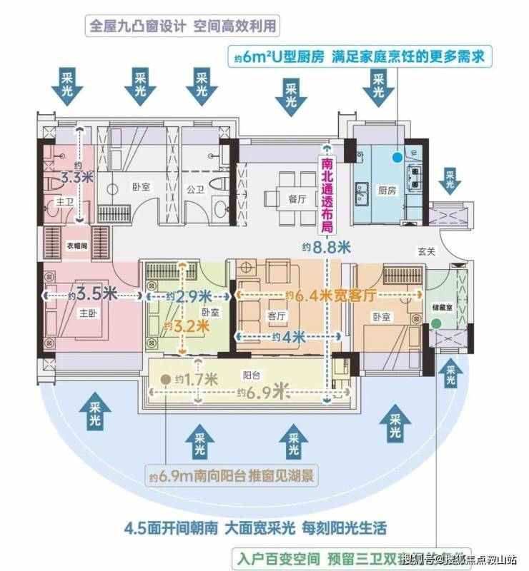 住宅户型:建面约84-128㎡三至四房,住宅使用率约78%(未包含不计容的飘窗、一半阳台)