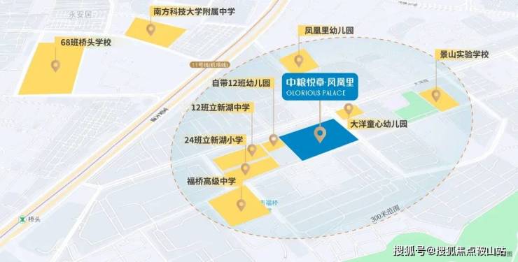 项目300米范围内,自带12班幼儿园/大洋童心幼儿园/凤凰里幼儿园/24班立新湖小学/12班立新湖中学/福桥高级中学/景山实验学校环伺。