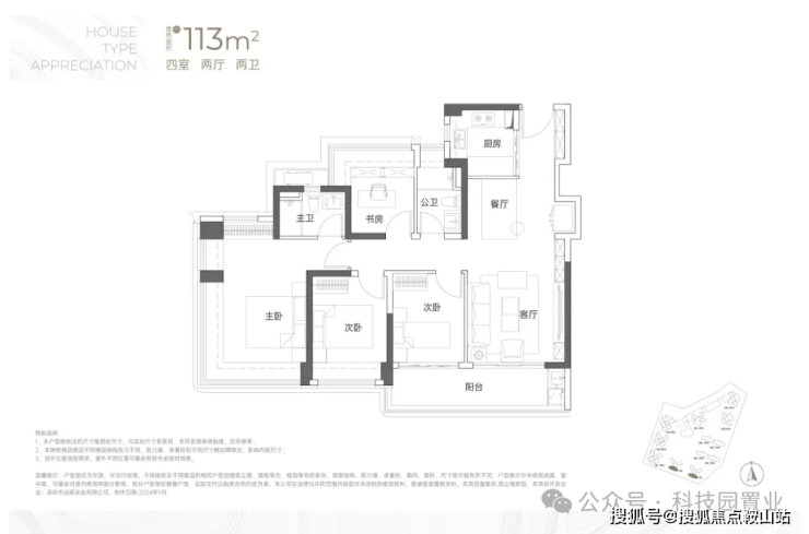 ◆113㎡四房二卫 880-1020万 单价7.8~9万/㎡西南向