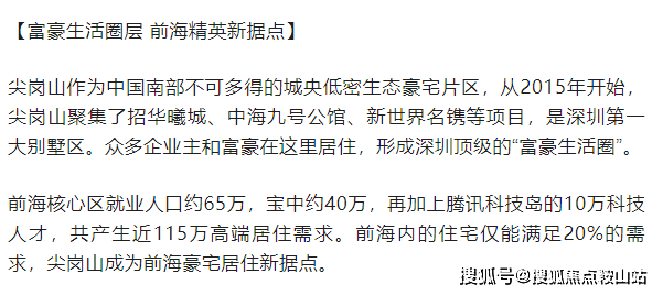 尖岗山片区坐拥6山2水4公园,约623公顷山水资原,体量相当于约5个莲花山和300个香蜜湖的叠加。超76%森林覆盖率,景致怡人,荟集前海企业领袖,已然成为塔尖圈层的身份象征。