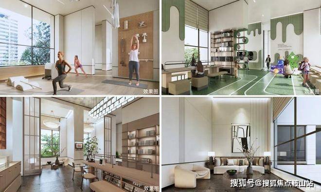 打造约380㎡分龄双泳池、约630㎡儿童乐园、约600米慢跑道、约950㎡阳光草坪四大活力聚场,五大主题社区会客厅,重塑生活新场景。