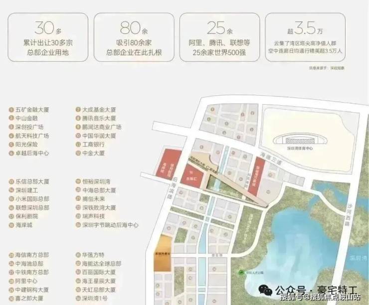 深圳湾核心产业区汇聚了阿里、腾讯等巨头,周边有中铁南方总部大厦、中建科工大厦、喜之郎大厦、华强方特大厦、中海油大厦等总部大厦,产业成熟度超深超总。