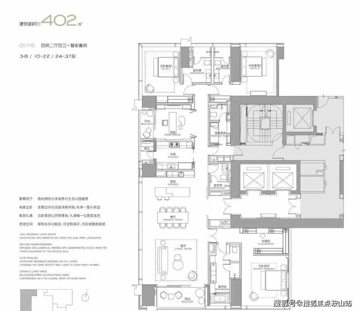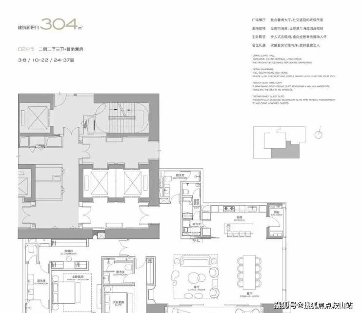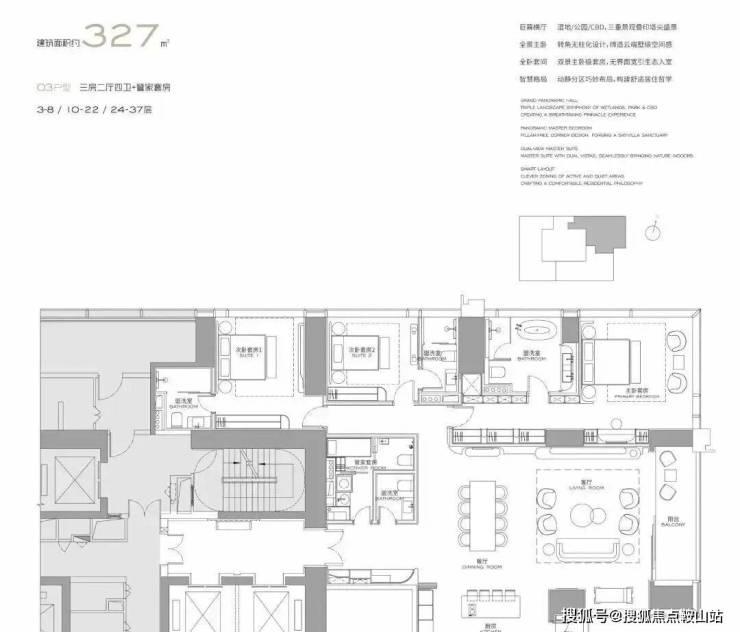 主力户型:303㎡、327㎡、404㎡、568㎡等大平层,最大户型达1032㎡