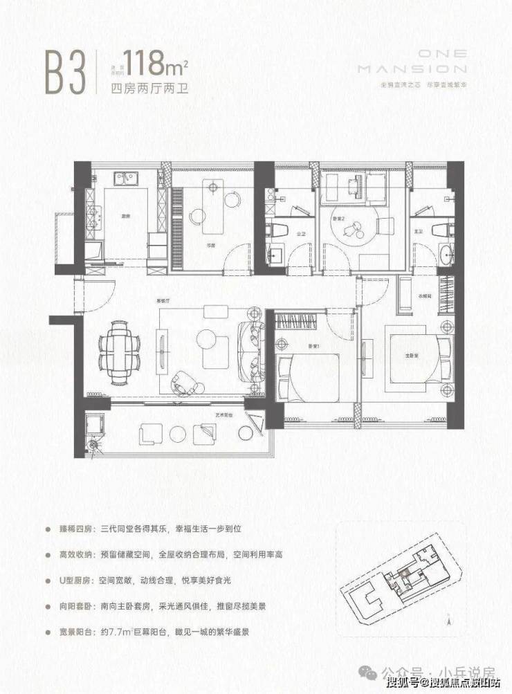 壹湾府建面约86-96-118㎡住宅,三房至四房,无论是刚需还是改善型需求都能满足。