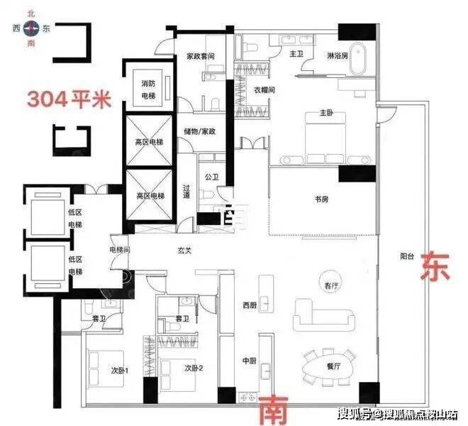 约209㎡四房三卫+家政是北区起步户型,