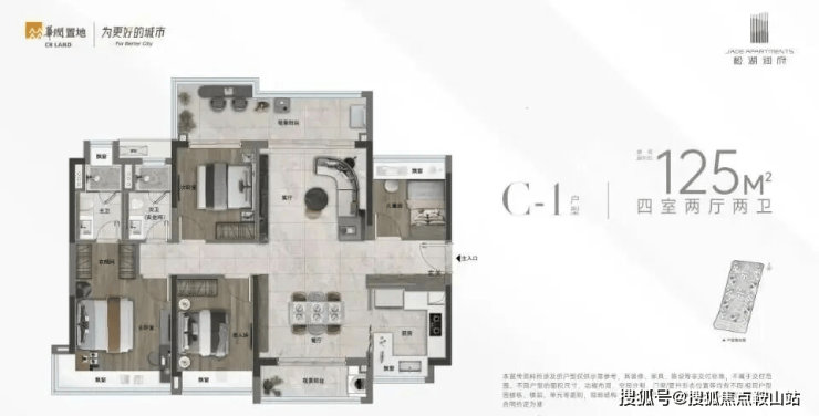 ✅【南北双阳台清风对流 等宽客餐厅空间利用最大化】C-1户型 125㎡ 四房两厅两卫