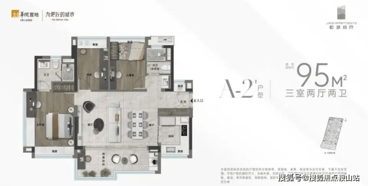 ✅【约5.7米横厅开间 大面宽户型 】A-2户型 95㎡ 三房两厅两卫