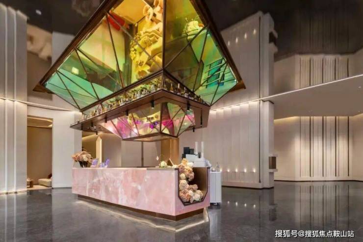 未来将交付的“水吧台”,以阿富汗粉玉结合钻石切割吊顶,构成独特的艺术效果,将成为业主可真实使用的“艺术会客厅”。