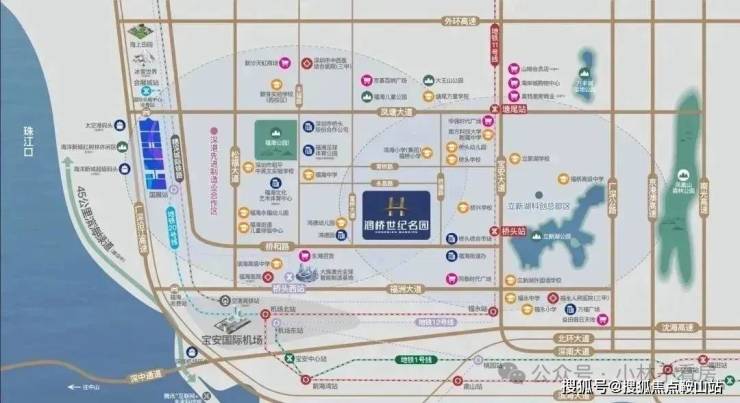 鸿桥世纪名园位于宝安区福海街道,毗邻宝安大道,富桥大道、永昌路和桥塘路的围合地块内。