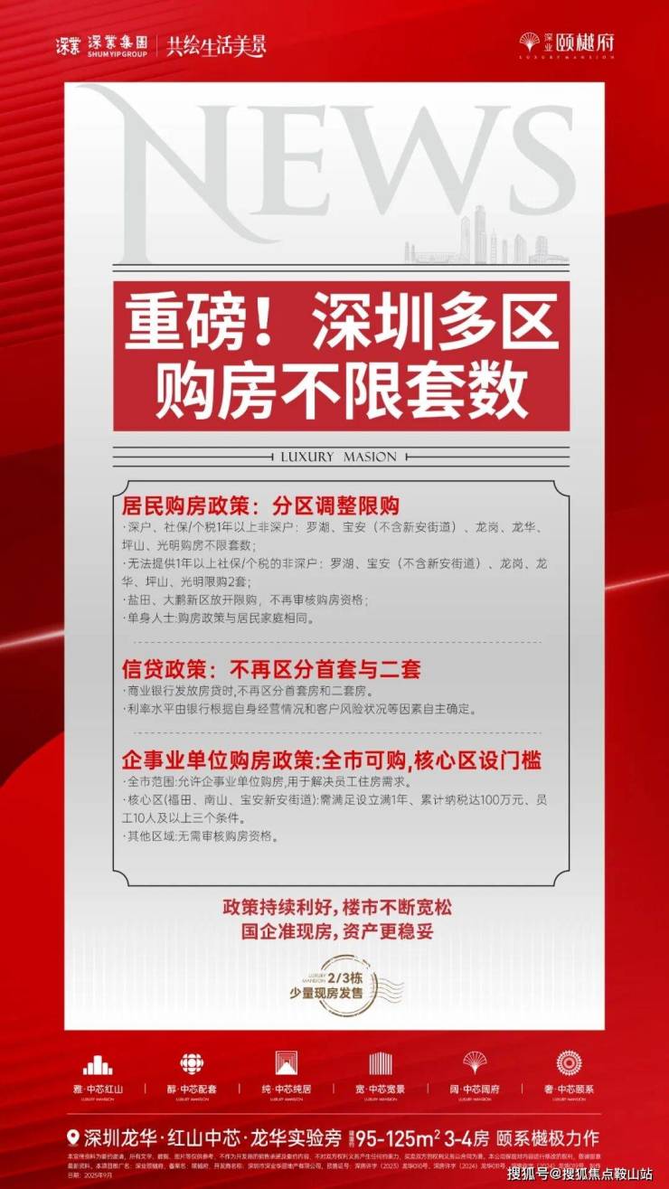 当前深圳已开放限购,深户非限购区不限购,非深户社保一年以上不限购,非深户无一年社保限购2套,接连利好政策,轻松入主红山。新周期下全方位利好接踵而至,多重政策利好,加速楼市回稳向暖,置业正当时。