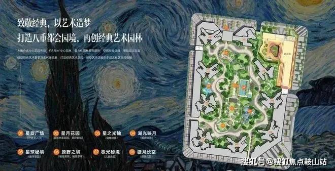 【建筑美学:星空律动的城市雕塑】由曾主持北京大兴机场线条设计的建筑师团队操刀,以梵高《星月夜》的涡旋笔触为灵感,打造错动有致的建筑群组。