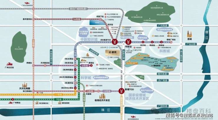 位于广州市增城区中新镇新新路16号,广州地铁21号线中新站附近;坐落黄埔中新知识城、科学城、科教城、广州经济开发区和增城经济技术开发区”三城两区”之间,占据知识城南核心位置、广深科技走廊腹地,利好加持,区域能级潜力无限。