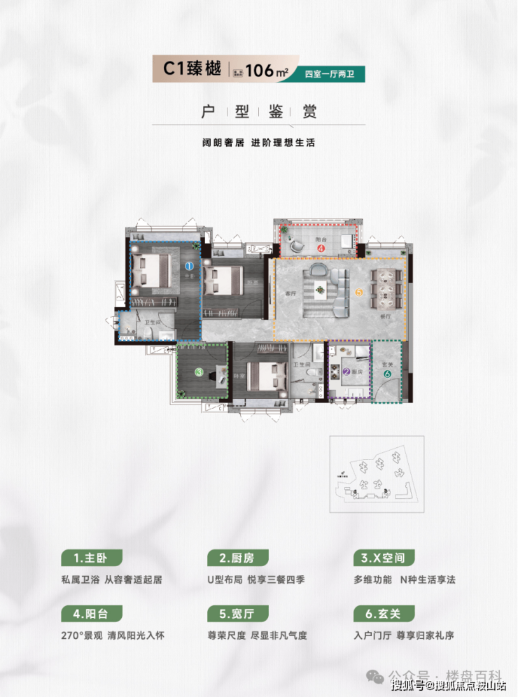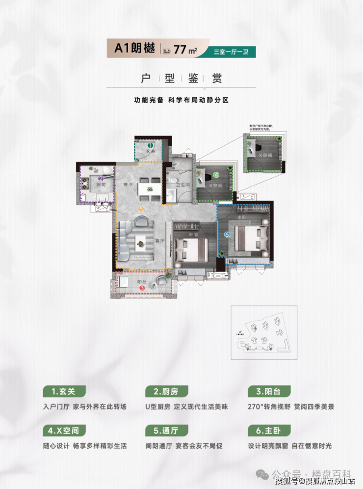主推建面约77-106㎡空中台境美宅,三房起步,户型兼顾实用与舒适,精准匹配不同家庭结构需求,可住可租,实现价值最大化。