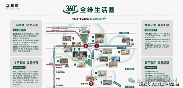教育——自建12班公立幼儿园;周边有5所幼儿园+4所小学+3所初高中,涵盖广外增城实验学校、华师附汇政双语学校等;