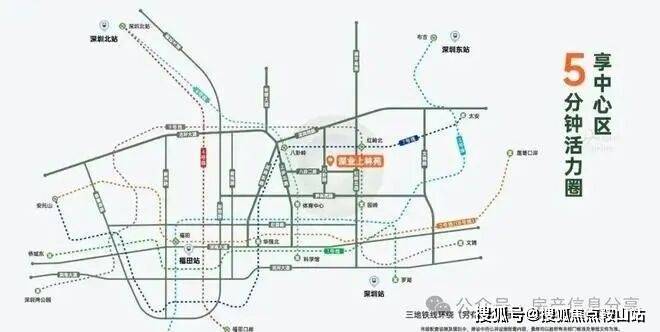 ③【金满贯枢纽——湾区半小时生活圈】近享福田成熟交通配套,4地铁线环绕(地铁6、7、9号线,另有规划24号线),畅达全城。3口岸、5高铁站,多条城市主干道,全维交通路网,多方式通达全城与香港,打造湾区半小时生活圈,深港双城无缝衔接。
