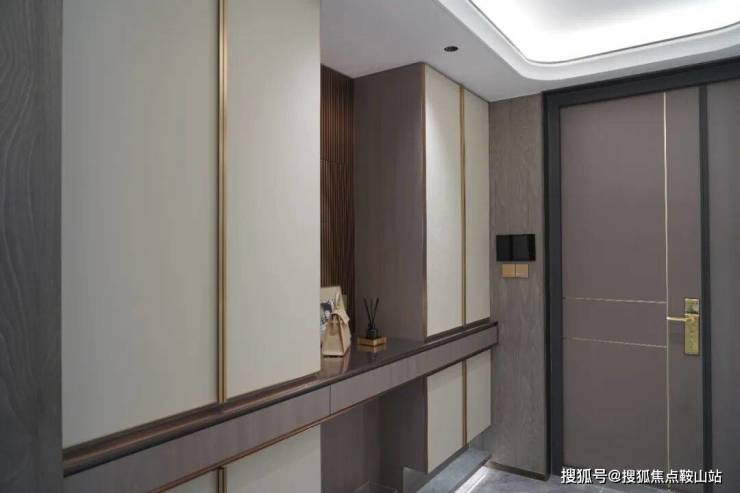 玄关,是归家的第一印象,恰如演唱会的开场曲,它负责调动我们的情绪。皮面柜门、木质内里,层层递进,布满惊喜。天花板部分设计参考波音747悬浮式吊顶设计,营造出轻盈悬浮的视觉感受,让整个空间更加通透、立体、有层次。