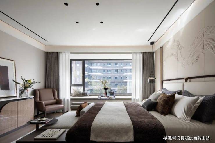 主卧背景墙选用艺术皮雕,不仅增加了室内的艺术气息,还赋予了卧室一种仪式感。这种特别定制的皮革工艺,是对隐秘空间的极致品质追求。这不仅是一间卧室,而是一种心境,在意式与现代的和谐氛围之中,每一个设计细节都是对美学和功能性的深思熟虑。