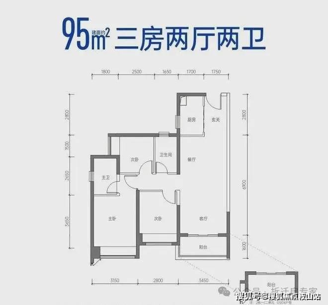 95㎡三房二卫:折后380-420万,单价4万/平-4.42万/平
