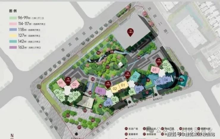梯户比:1栋二单元3梯6户、三单元和四单元3梯4户、五单元3梯5户