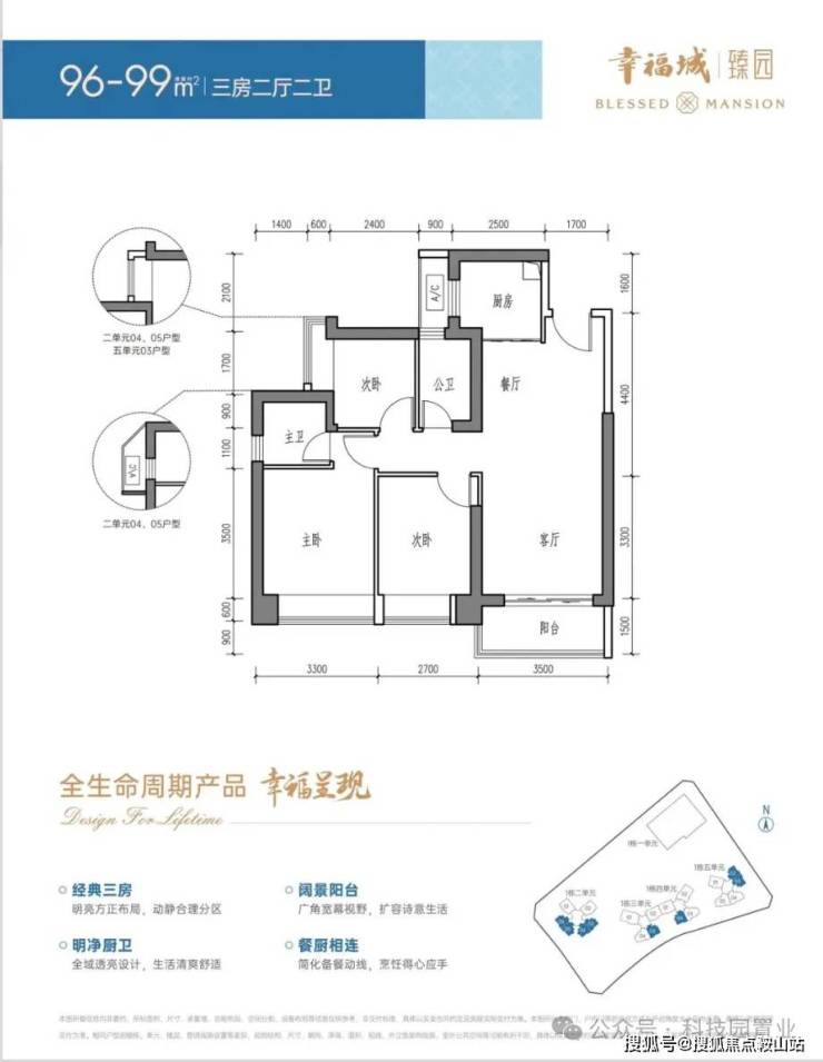 约96-99㎡三房两厅两卫(竖厅),折后:约490-590万