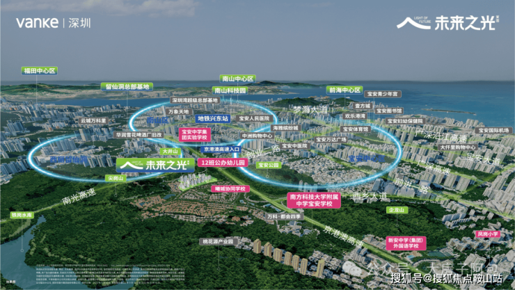 宝安南山聚合板块,纵享科创连廊红利叠加,周围环绕着南山科技园、留仙洞总部基地、尖岗山高新园、前海核心区、宝中及大铲湾等科创中心,是深圳西部“人才、经济、规划”高度集约的价值腹地。