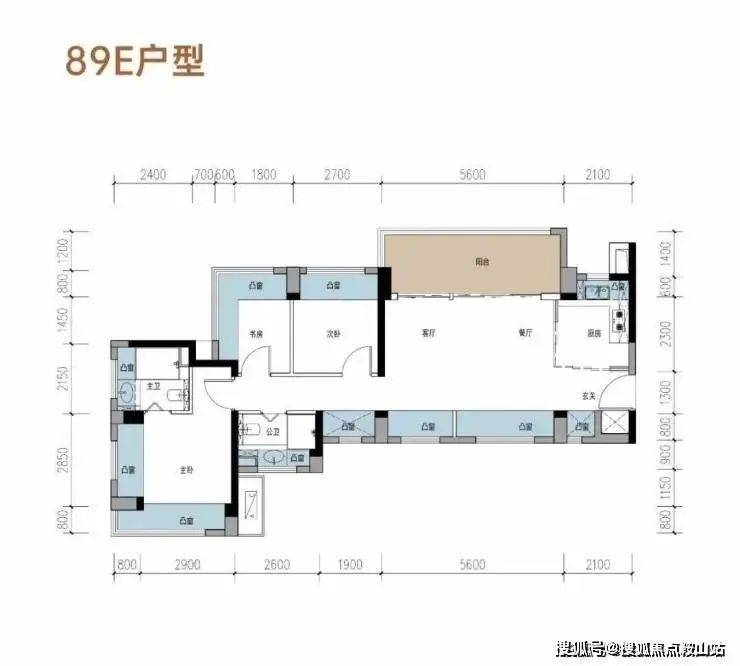 此次首推的1栋约89-108㎡3-4房,产品十足,不同户型的实际使用率加赠送面积有约95-105%,在光明确实少见,其中89E户型表现最突出
