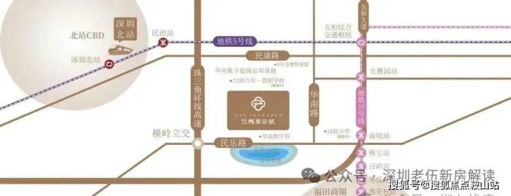 交通配套:项目距离地铁 10 号线南坑站约 700 米,距离光雅站约850米。周边还有5号线民治站,6号线白石龙站,及规划中的22号线,地铁通勤便利。周边道路有珠三角环线高速、五和大道、民乐路等,可快速到达深圳各核心区域。