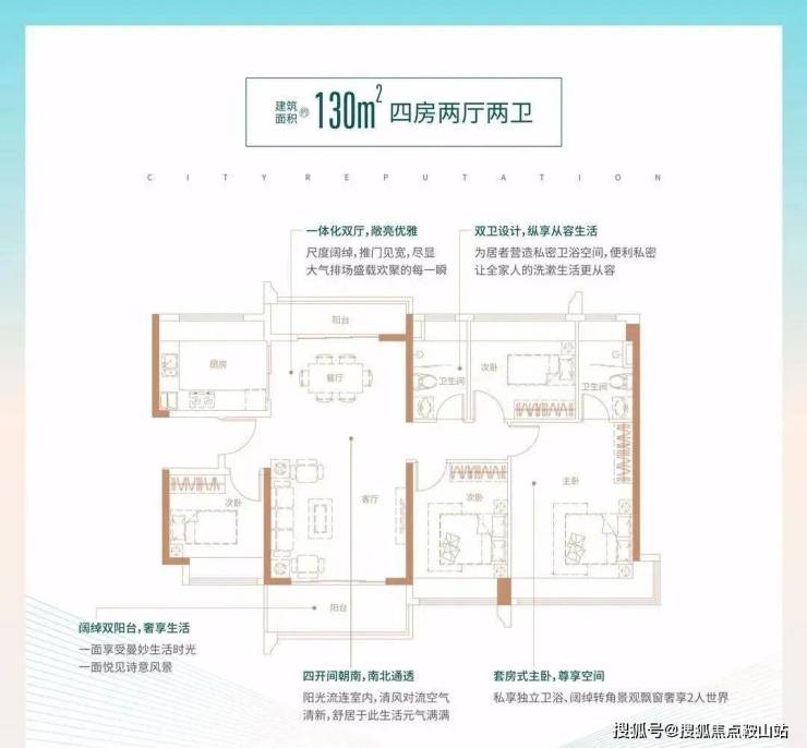 130㎡的4房2厅2卫:设计的竖厅格局,双阳台南北通透,4开间朝南。
