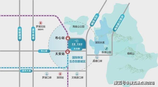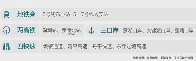 项目距离地铁5号线布心站约250m、距离地铁5、7号线太安站约500米。周边近享2高铁、3口岸、4快速,通达全城,三大口岸年通关量5876万人次,地铁旁物业坐享深港两地海量商机人流。