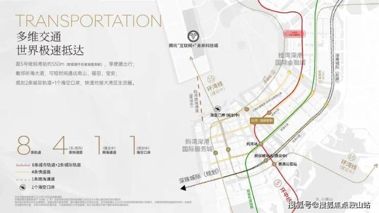 距5号线妈湾站约550m,毗邻听海大道,可快速通达南山、福田、宝安及大湾区生活圈;