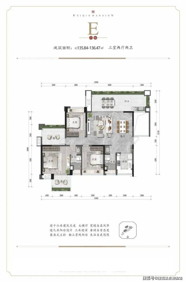 北秦华府主力户型逾16米建筑面宽,于世界湾心的寸土寸金的资源里,府藏奢阔天地;约4.2~6.8米横厅设计,逾9米奢阔观景阳台,于热带山海之间,体验生活悠然;甄选品牌精装,宽奢钢质子母入户门,LOW-E中空静音玻璃,无忧生活体验;社区布局健身步道、泳池、儿童乐园,为全年龄人群,提供运动、健身体验。〖户型鉴赏〗
