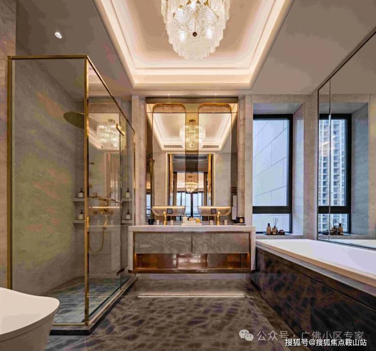 ✨ 地面金彩蝶大理石与墙面印象彩虹奢石营造柔和基调;