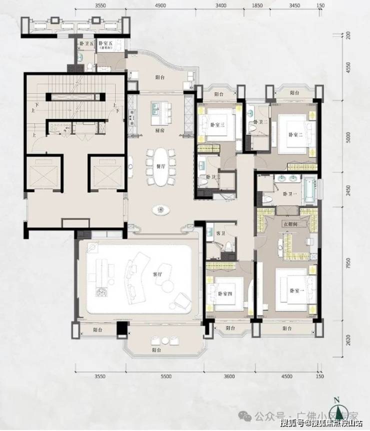 ——十字中轴九宫格布局、四开间望奢阔江景