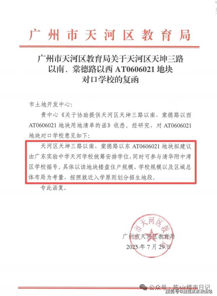 地块出让时就把学校安排得明明白白拟建议由广东实验中学天河学校(即保利天瑞配建学校,九年制)统筹安排学校学位,同时可参与清华附中湾区学校号。