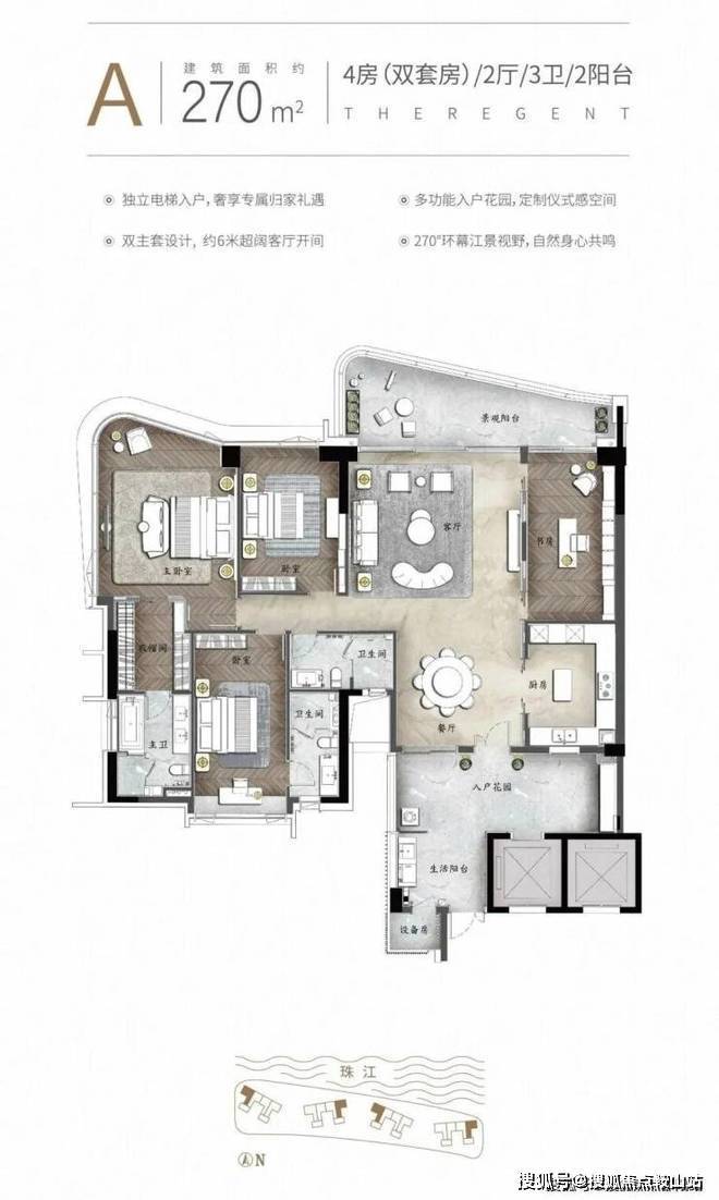 1. 极致景观:三面望江,无遮挡的江景体验。