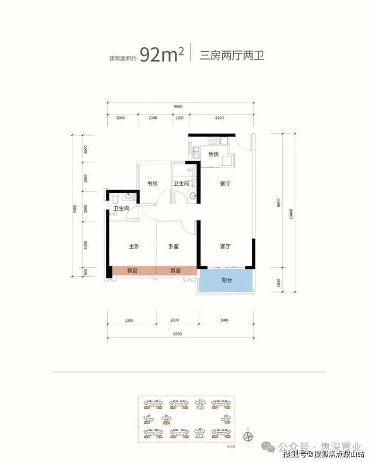92㎡三房:经典竖厅设计,主卧套间+双次卧,适合二胎家庭;