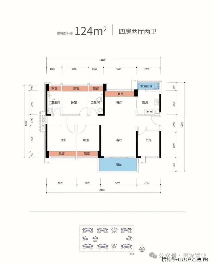 124.55㎡楼王户型:独立玄关+阔绰主卫,改善客群最爱。