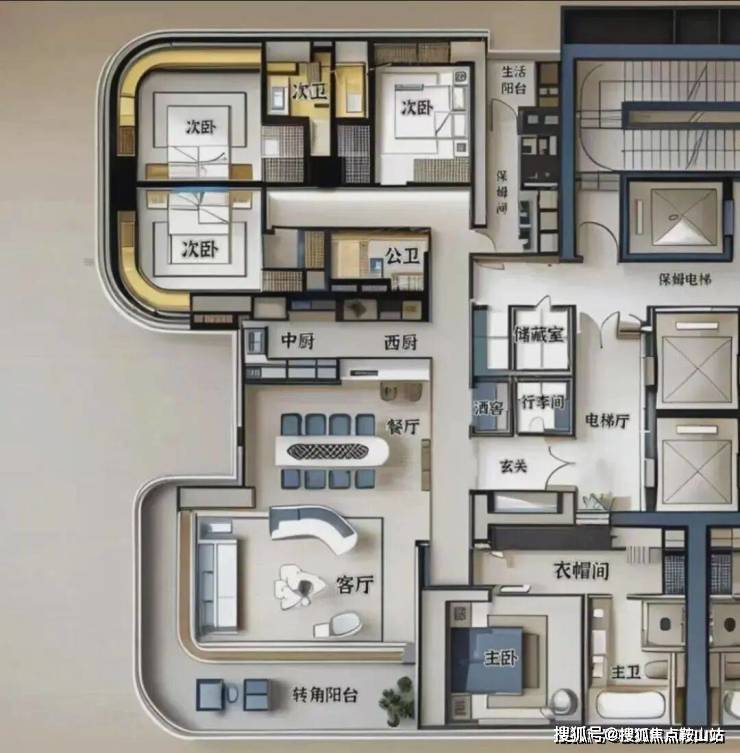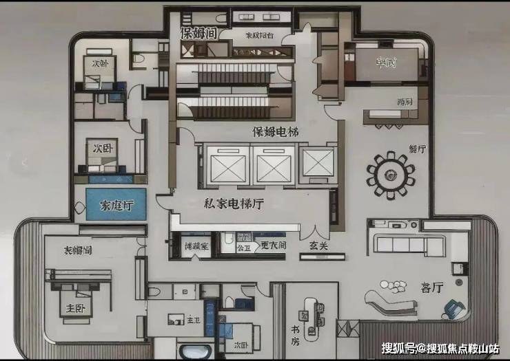 1A栋(1栋一单元)-43层:3梯1户,约510㎡,一层一户,私密性极致,为项目旗舰户型。