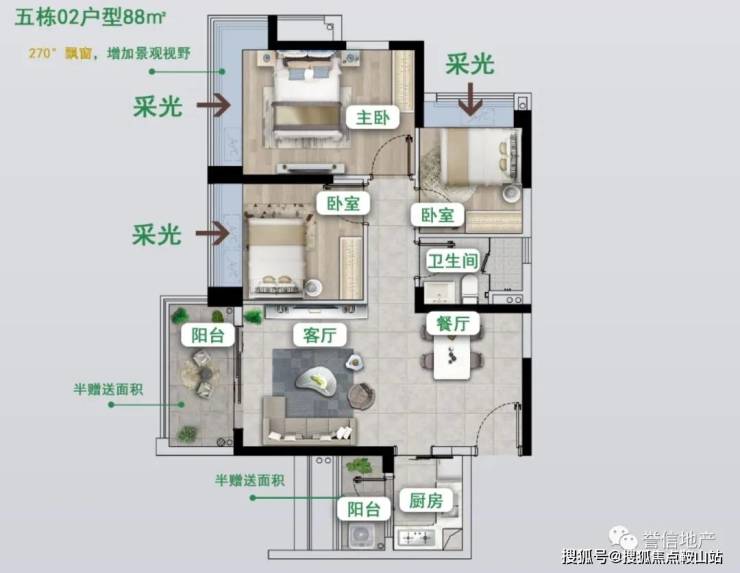 三房两厅一卫舒适—88/89㎡,小面积三室,首置优选。