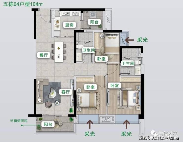 三室两厅两卫奢居—104㎡,三开间朝南,舒适对流,改善优选。
