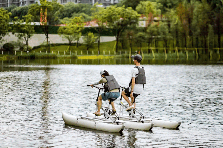 晨跑者在滨水步道与朝阳竞速,桨板球爱好者在湖面展开竞技,亲子家庭划着皮划艇留下涟漪,湖畔草坪上的露天音乐会常与落日同频。