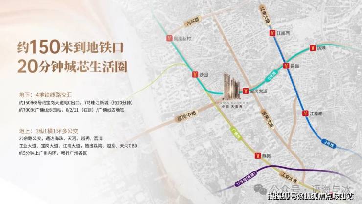 中旅天宸府落子海珠区宝岗大道核芯地段,以150米地铁通勤半径定义高效生活范本。项目直线距离地铁8号线宝岗大道站仅约150米,这条贯穿海珠、荔湾、天河的交通动脉,实现1站直达琶洲数字经济岛,5站速抵珠江新城CBD,7站连通北京路千年商圈。更可通过广佛线无缝接驳荔湾老城,构建起半小时广佛生活圈。地面交通网络同样四通八达,工业大道、昌岗路等城市主干道环绕,自驾30分钟内可覆盖广州塔、万胜围等城市地标,无论是商务通勤还是休闲出行,均能从容应对。