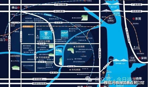 【城市交通】▷出门即彩虹大道,从容畅行主城圈;▷城轨2号线(规划)西起小榄,东至马鞍岛,途径西区、石岐、东区等;▷广珠西线高速从项目出发可迅速抵达中山西区、东升高速口。