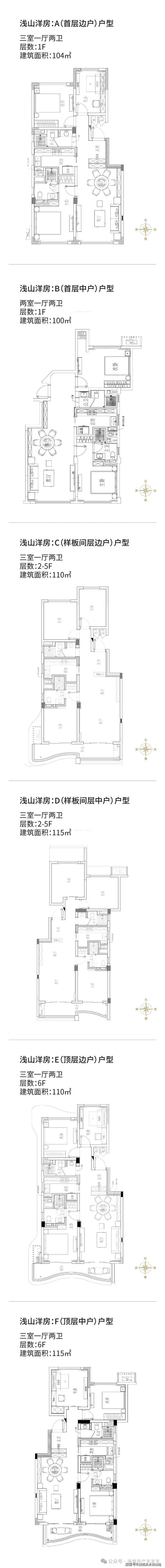 100㎡ 两室两卫 | 104㎡-115㎡三室两卫