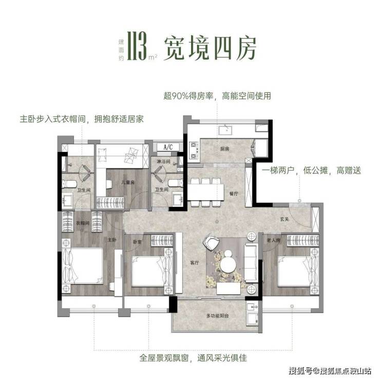 对于想要追求改善的购房者而言,建面约98㎡的四房户型足够你达成一步到位的终极目标。