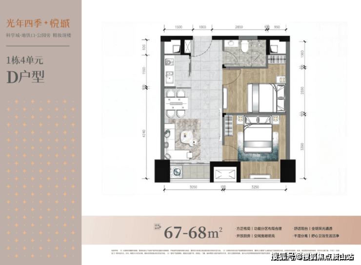 🏡 方正格局,功能分区布局合理;开放厨房,空间宽敞明亮;舒适阳台,全明采光通透;干湿分离,舒心卫浴生活洁净。