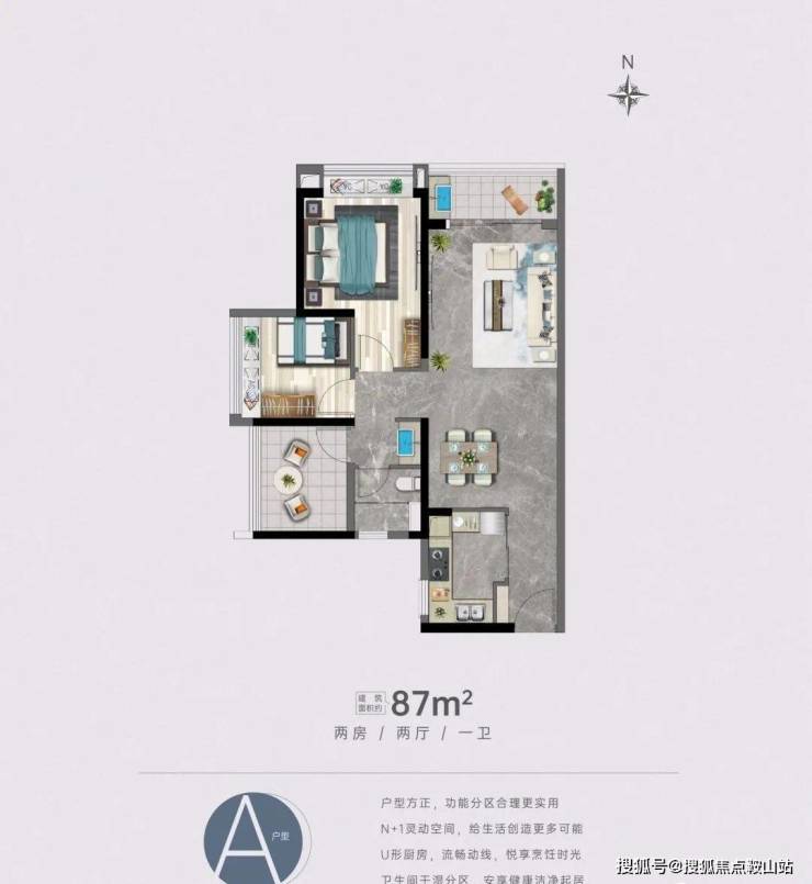 【A户型-约87平方 -3房2厅1卫】
