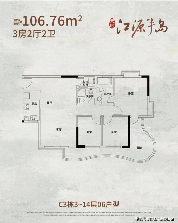 约107㎡3房2卫 南向观江