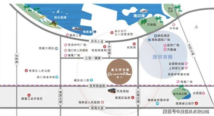 交通:滨海大道/丘海大道/海秀快速路 0.5 km 内,距国贸 2 km、秀英港 0.5 km、海口站 15 km、美兰机场 25 km